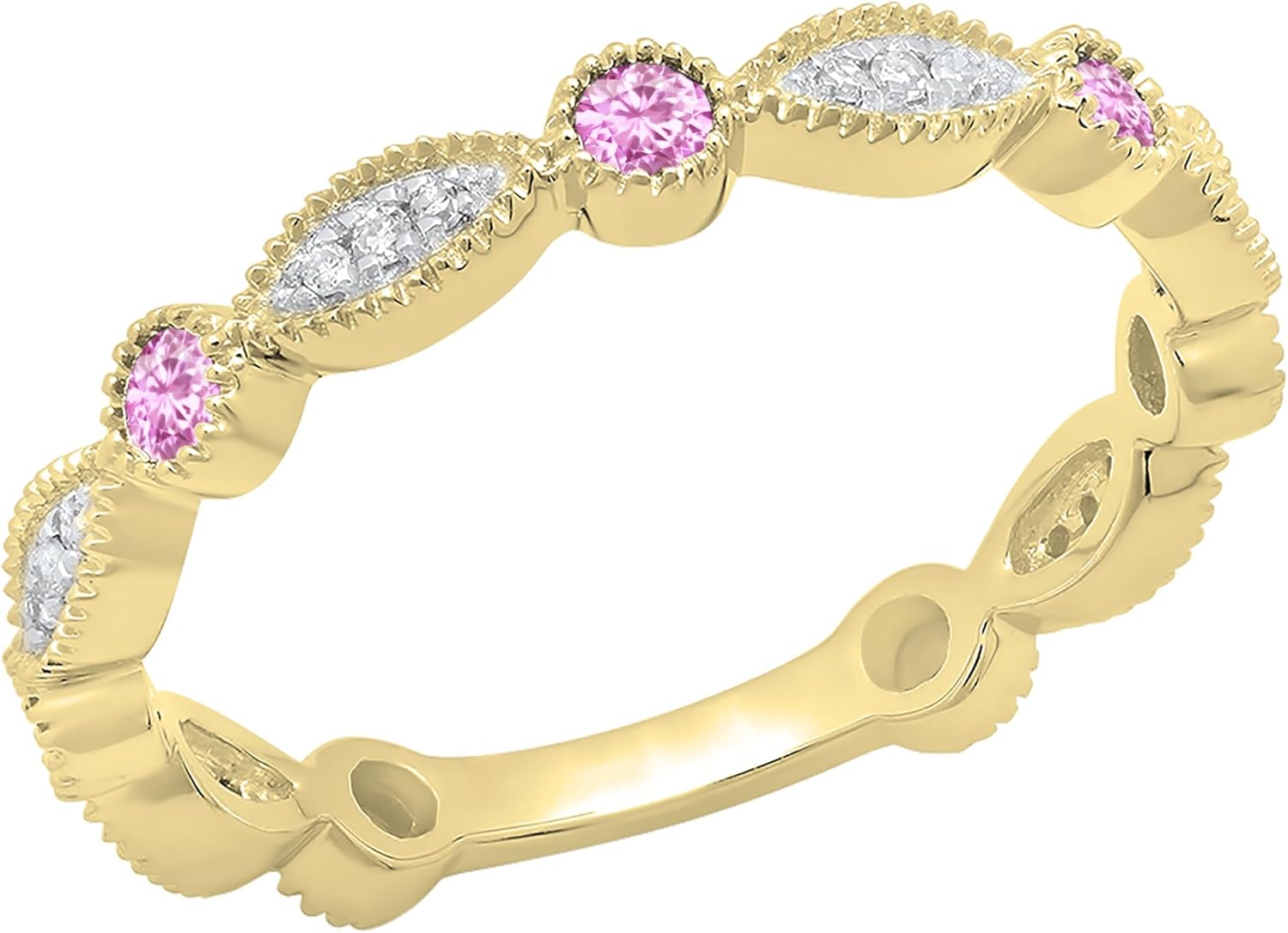 This lovely Wedding Band Ring features Round Gemstone(s) & White Diamond(s) in Prong Setting.All stones are sparkling.All our products will come with a gift box.SKU # K5547-10KY-P
