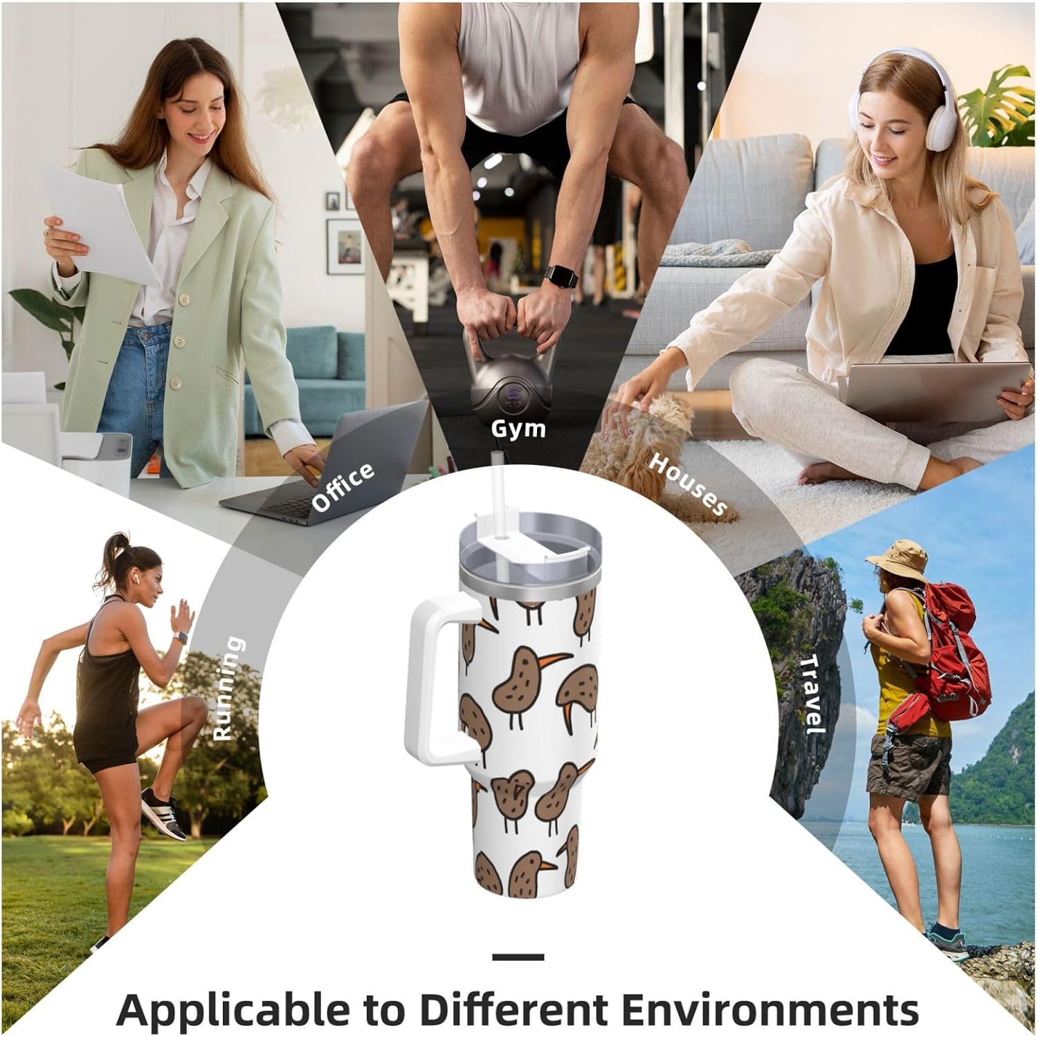This Kiwi Birds Cute Print Ice Bully Cup features a double layer stainless steel design that can be used for a long time without rusting. The lid has good sealing to prevent water from overflowing, and it is easy to unscrew for filling and cleaning. It can keep water, coffee, or drinks warm or cool for hours and is suitable for travel, camping, and driving.