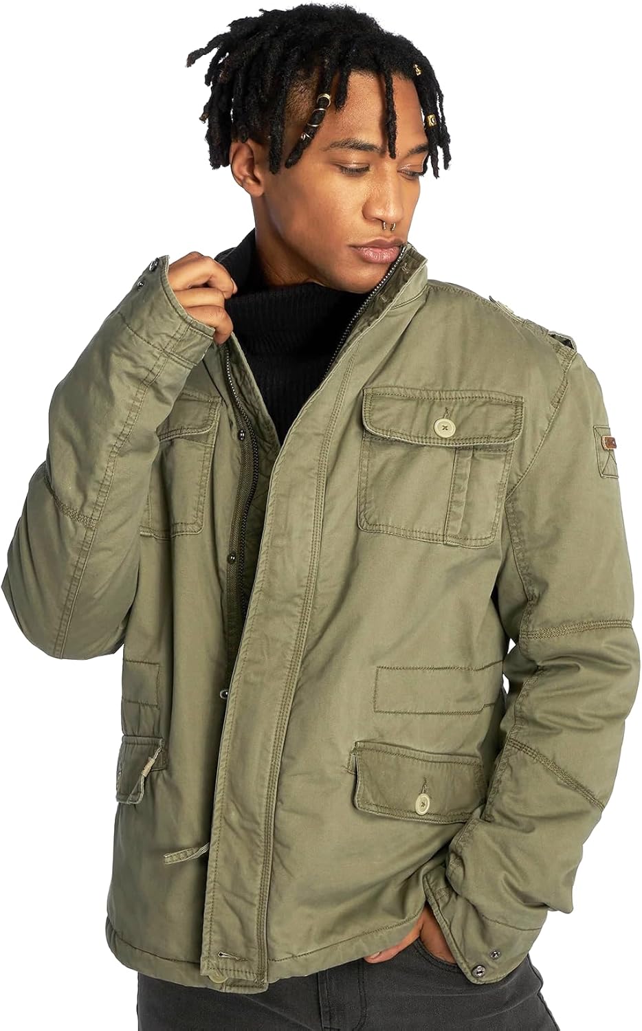 Step into winter with confidence and style in the Brandit Britannia Winter Jacket. A modern take on the classic M65 field jacket, this men's cotton winter coat is the perfect blend of form and function, designed to handle the rigors of outdoor activities while exuding a rugged sophistication. Tailored for the cold, the teddy lining of this jacket significantly enhances its warmth, making it a reliable ally during those chilly winter months. Brandit field jackets will wrap you in a coat of comfort and warmth, ready to brave the elements. The jacket's hidden hood, tucked away neatly in the collar, provides versatility in varying weather conditions. Stylish and durable, the jacket features a stand-up collar with a 100% polyurethane faux leather application. This adds a fashionable layer to the rugged design, giving you a winter jacket that doesn't compromise on style or durability. The used-effects on this coat present a vintage and rugged look that is perfect for casual wear or outdoor adventures. Crafted from 100% cotton, this jacket ensures maximum comfort and durability. The faux fur lining, sleeve lining, hood and padding are all made of 100% polyester, further enhancing the jacket's warmth and durability. The polyester padding in this M65 field jacket ensures extra warmth and comfort during colder seasons.