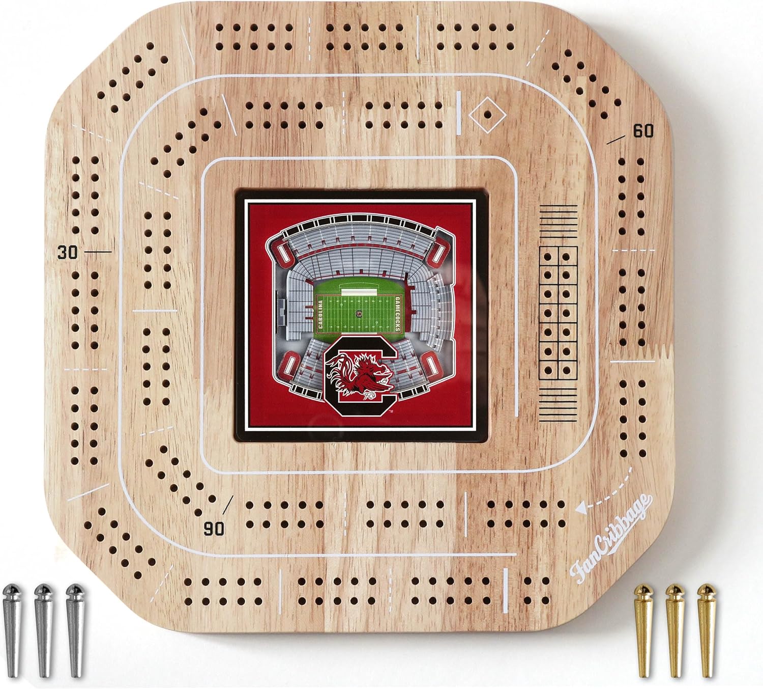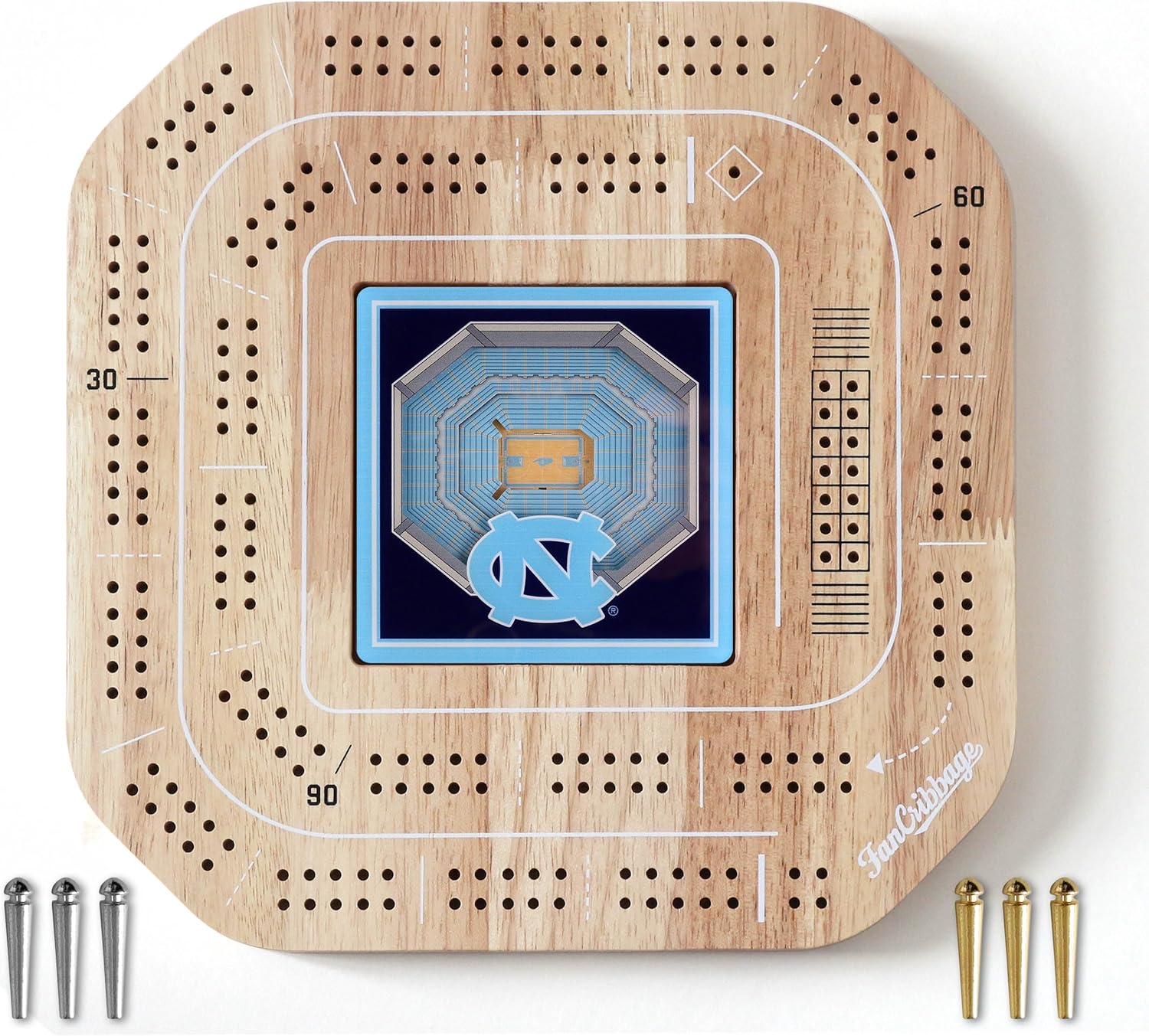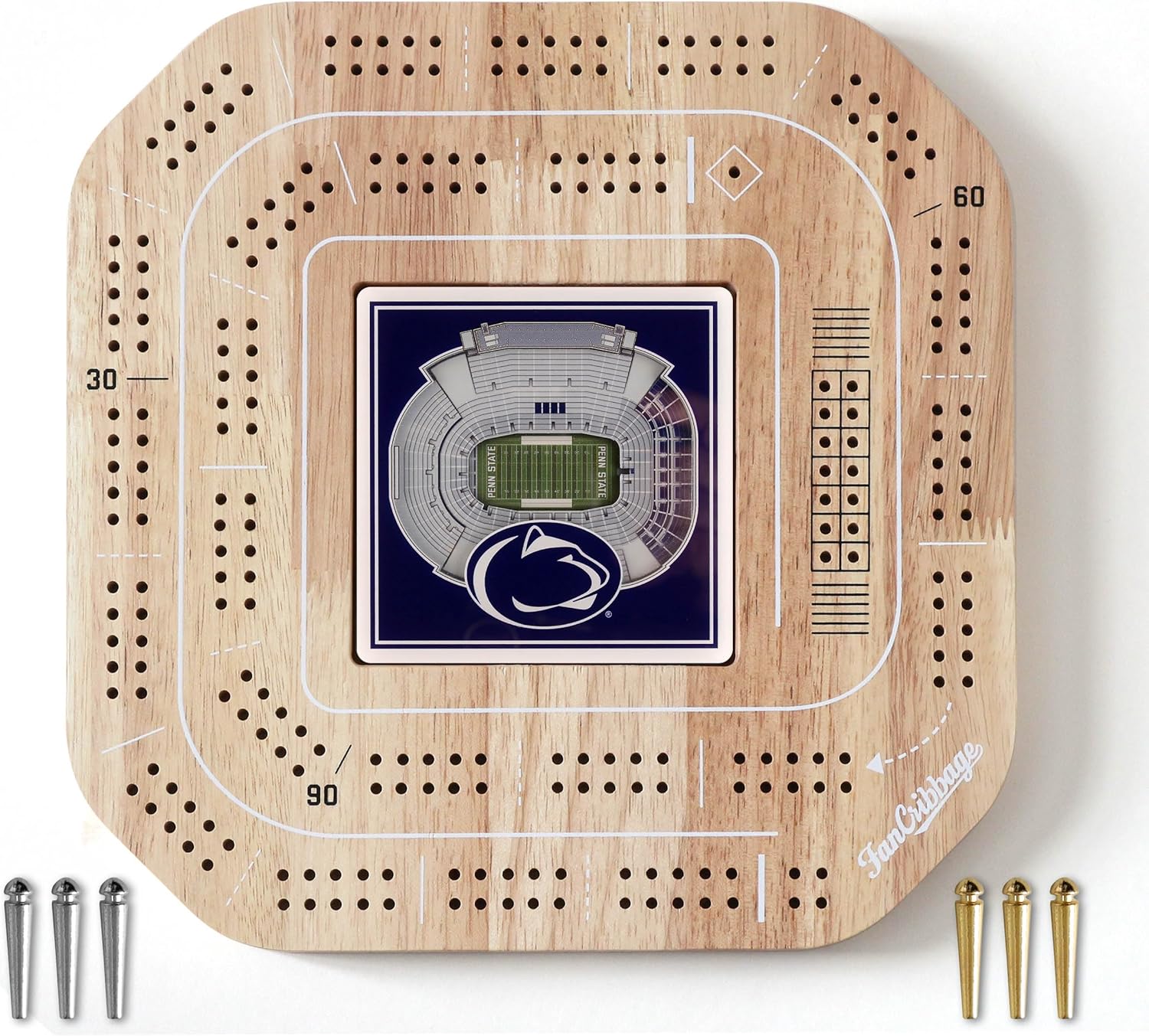 Add a little flair to your game with Fan Cribbage! This 2-person cribbage board features your favorite team in 3D right in the middle of the board, certain to be a hit with players of any age! The white accents on the wood surface are a perfect complement to the smooth team graphic. Looks so good, you'll want to keep it displayed even when you’re not playing!