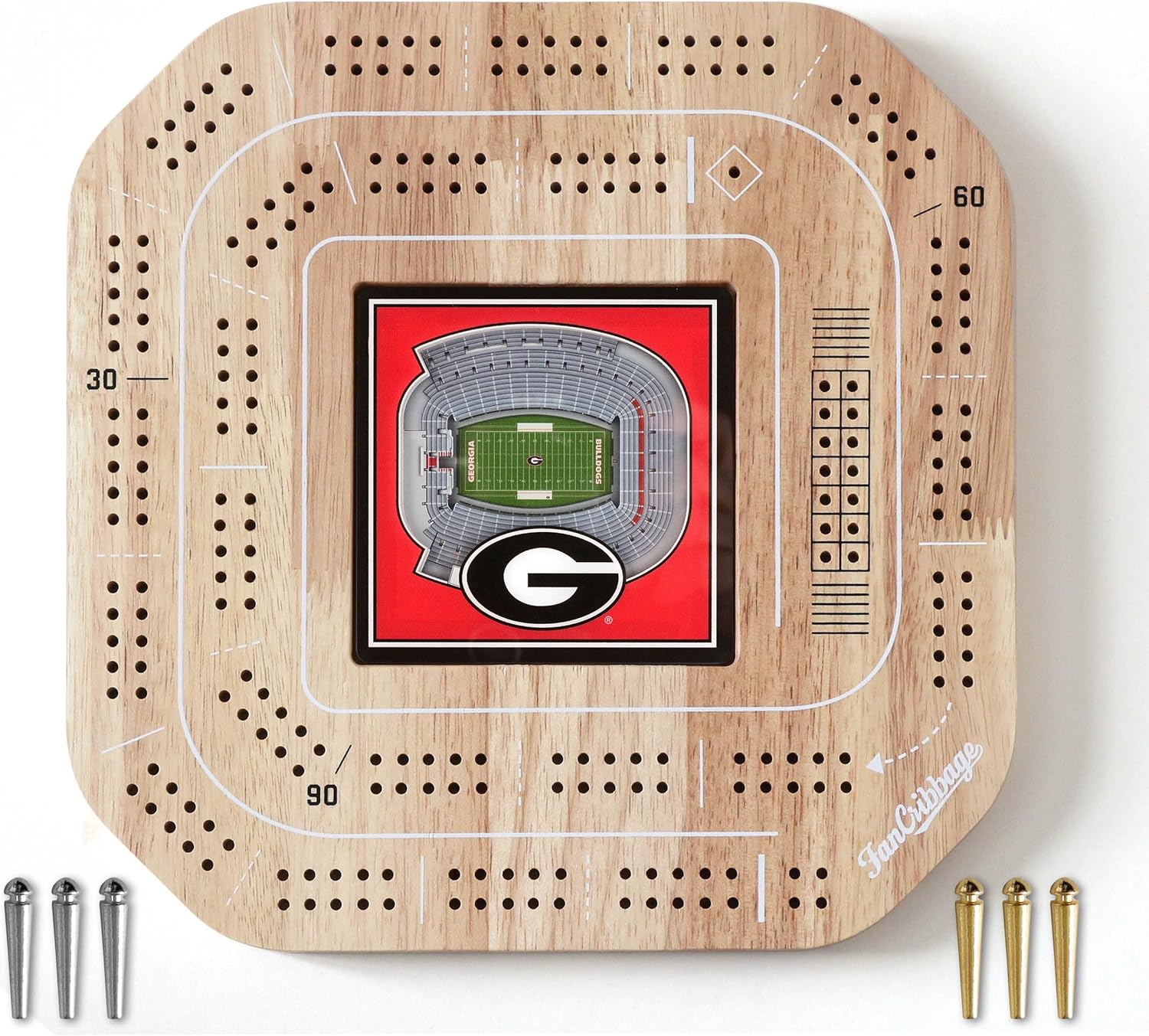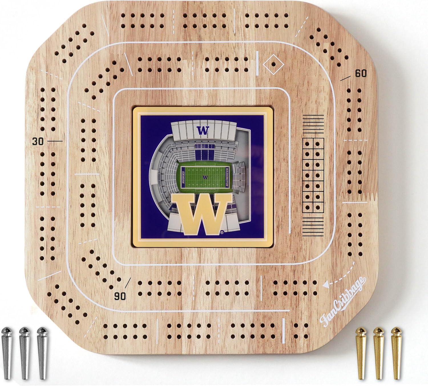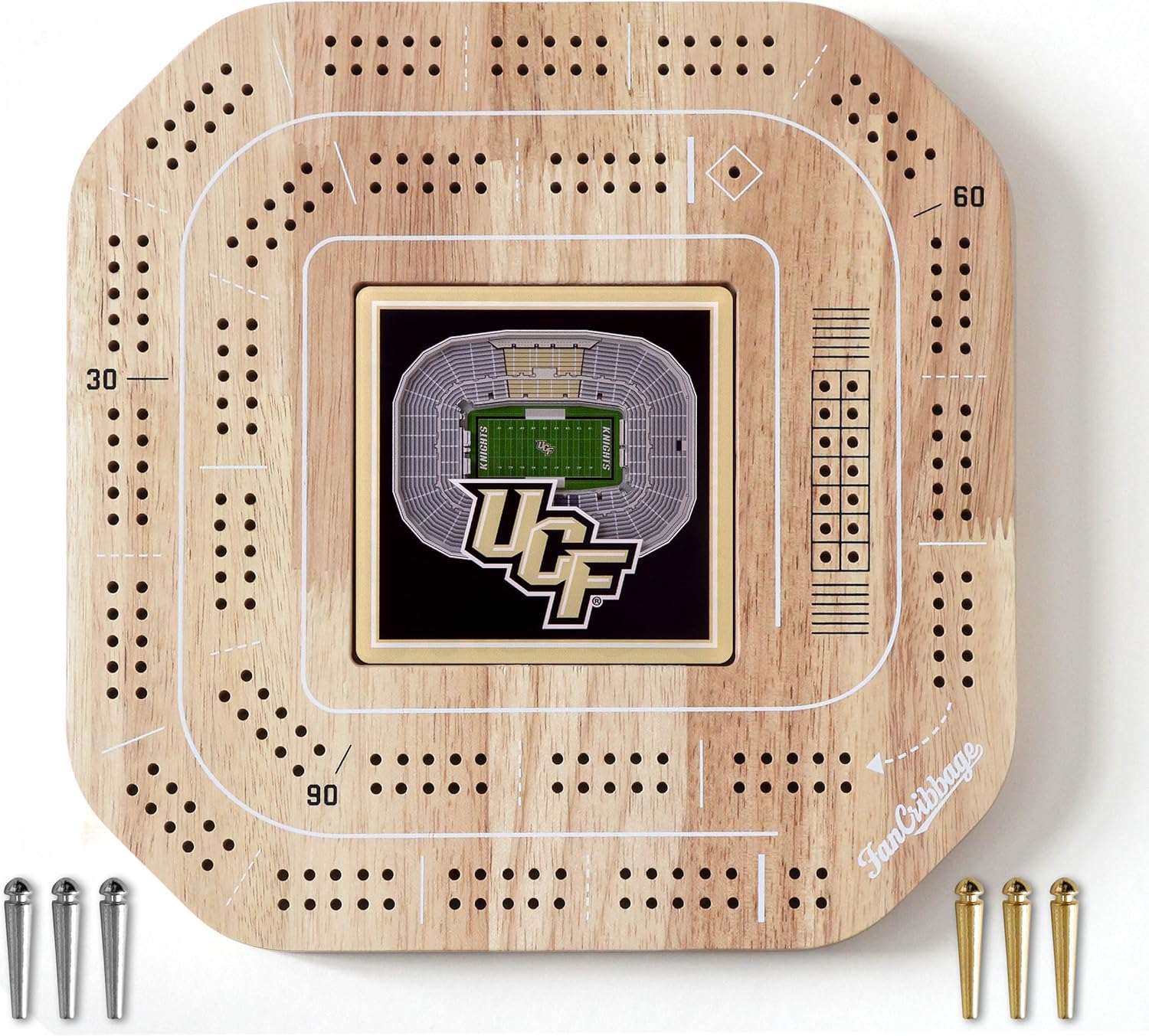 Add a little flair to your game with Fan Cribbage! This 2-person cribbage board features your favorite team in 3D right in the middle of the board, certain to be a hit with players of any age! The white accents on the wood surface are a perfect complement to the smooth team graphic. Looks so good, you'll want to keep it displayed even when you’re not playing!